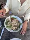 The chicken bowl--recommended by the server--was one of the plainest dishes I've ever had in a restaurant. Arugula, brown rice, chicken, a few tiny cubes of cheese, unripe tomatoes, and shreds of chicken, with no sauce or dressing of any kind. The wine was expensive by the glass for this kind of restaurant. Service was just okay.