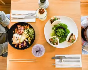 Great food, great service , quaint atmosphere. Everything was delicious! We had a salad with salmon skewers and pita with 3 different dips that were really enjoyable. The glass of Pinot added to the lovely evening. Close to The Cooper fitness area, a great go to restaurant.