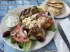 We shared tsatziki and a Greek salad, then each had a grilled salmon sandwich. All were excellent and authentic. The service was good also. I would look forward to returning and recommend Zorba"s.