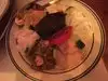 Split the cold sampler appetizer. Very impressive collection of flavors, delicious. I had the chicken kabob and my partner had the Calamari. Chicken was juicy and flavorful. Calamari was nicely battered and very tender. You'd be hard pressed to go wrong here.