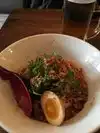 Of about four ramen places around that I visited in the last couple of weeks, this stands out - because the ramen is interesting and tasty. The menu is short and simple, but everything I tried was always a bit different (in a very good way) from your regular stuff at all these other (quite frequent lately) places. Nicely spiced sesame cucumber, or kimchi, that has sweetness in addition to the usual zing. No broth truffle Dan Dan Ramen was just lovely, with good level of spice, not dangerous, just right. Even your most basic ramen comes really alive with an addition of onion bits and black garlic sauce. Yummy. Room is a bit noisy and as current trends dictate, dark. No frills service. You'll get exactly what's needed - very good simple meal in no time. Recommended.