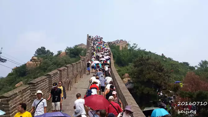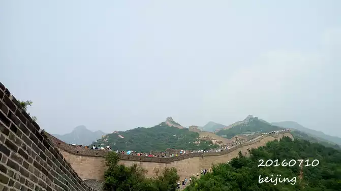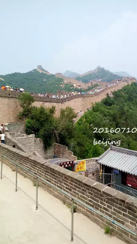 No one is a true man if they haven't climbed the Great Wall. Badaling is a crucial outpost of Juyongguan Pass, known in ancient times as "Juyong's greatest danger lies not at the pass but at Badaling." The sky grew pale blue, and the crowds grew larger and larger, truly living up to its reputation as a "people's Great Wall." The sun shone brightly, and beneath my feet lay the winding Great Wall. Watching the bustling crowds and groups of foreigners, I slowly climbed the intricately carved, mottled stone walls. While everyone else rested below, my father, an uncle, and I climbed to a beacon tower. It truly was a "tough climb." Looking down, I gasped for breath. There were many people at the top, too, and we "pointed out the mountains and rivers, and wrote passionately," with cheers echoing in my ears. There aren't many pictures, and it's so hot, so here's one last, stunning postcard. The whole morning passed in this scorching heat. On the way down the Great Wall, you can find a place to stand in the wind and it will be very cool. When you get down, your legs will be soft.