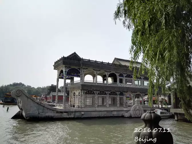 Qingyan Fang, commonly known as the Stone Fang, is a large stone boat located by the lake at the west end of the Long Corridor. It symbolizes “clear seas and peaceful rivers” and is the only Western-style building in the Summer Palace.