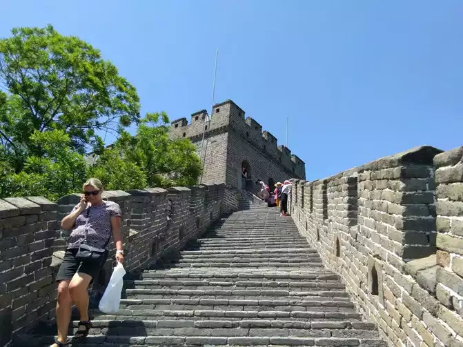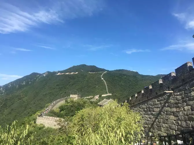 Because the Great Wall is quite far away, public transportation or taxis (which are quite expensive) aren't suitable. When I was researching, I looked up a lot of day trips to the Great Wall. The first question was: which section should I go to, Badaling or Mutianyu? We ultimately chose Mutianyu. The scenery is essentially the same, and both have cable cars. If you're traveling with children, don't even think about hiking; that's not practical. Most importantly, Mutianyu is less crowded.