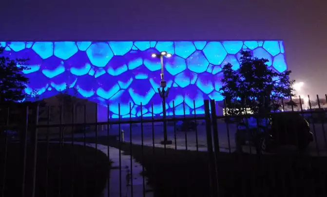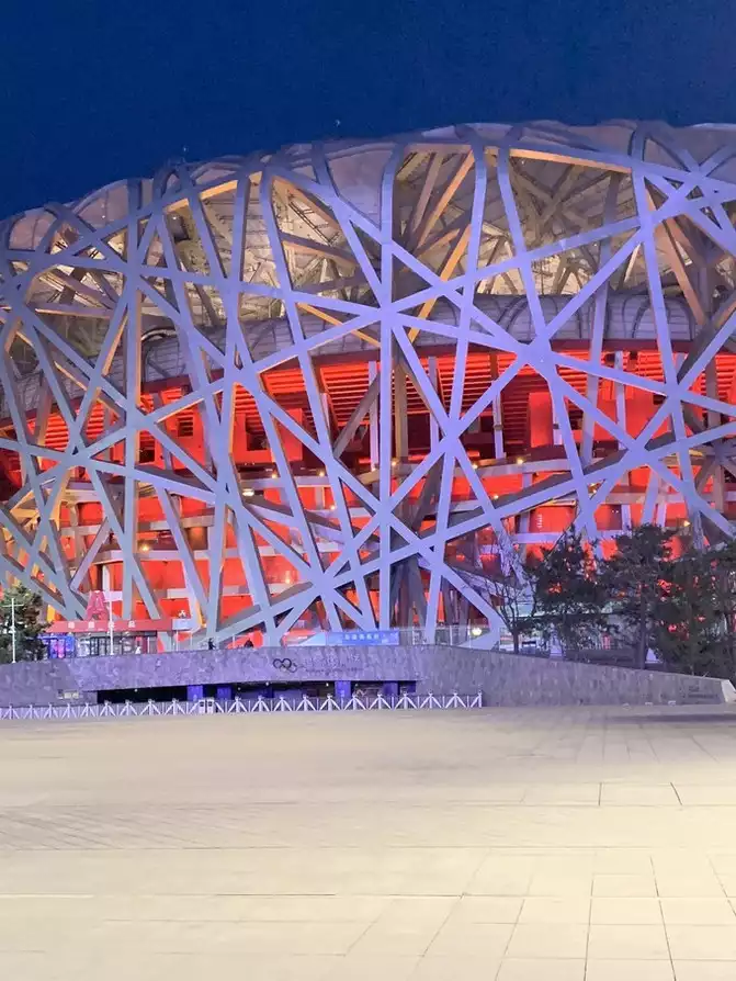 After returning to the city, we took the subway Line 2 to Gulou Street Station, then transferred to Line 8 to Olympic Sports Center Station. The Bird's Nest and the Water Cube were right there. We hadn't originally planned to visit them inside, as the night view was more stunning. It's worth mentioning that there's also the Pangu Seven Star Hotel, which is also beautiful at night. After checking in and taking a few photos, we returned to the hotel to rest.