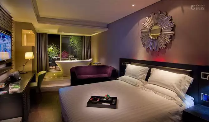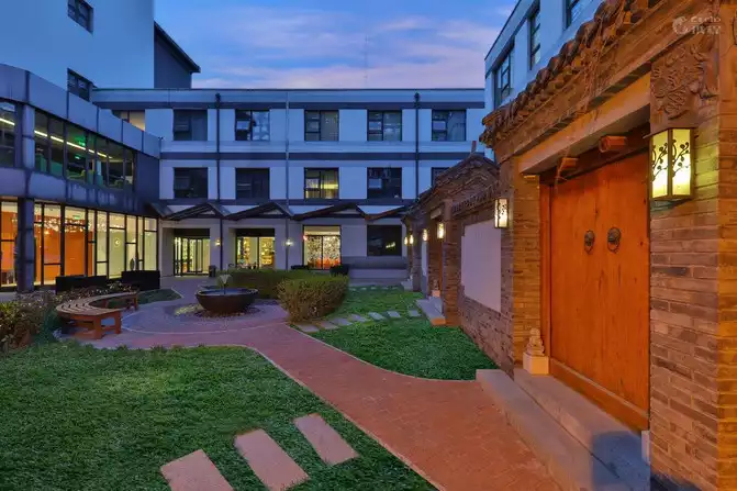 This hotel seems to be inspired by blue and white porcelain, perhaps because it is close to Ciqikou subway station! The blue and white building and the Hui-style courtyard garden design bring us a sense of tranquility in the bustling city. There is a rest area in the garden where we can enjoy tea and chat, and appreciate the tranquility and comfort of life after busy work.