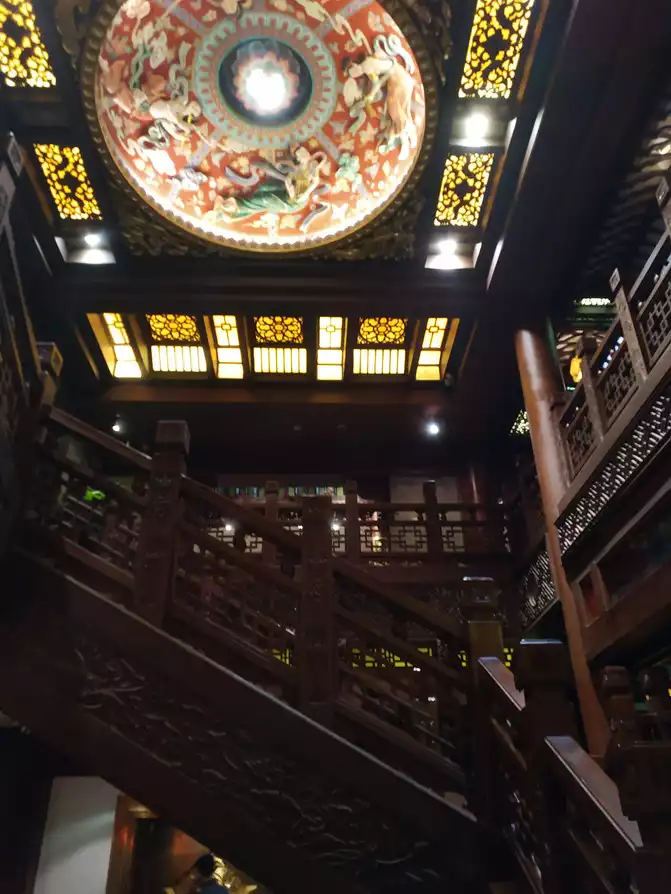 This is an ancient building with cornices and brackets, carved beams and painted buildings, an internal winding corridor and a strange scene as you move around.