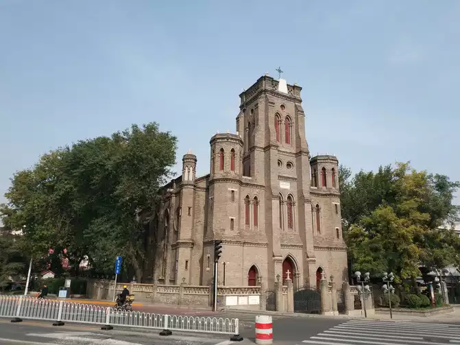 The Qingxu Pavilion, the only remaining Ming Dynasty structure within the Jade Emperor Pavilion complex, remains. Before we knew it, it was almost noon, so we found a crowded local restaurant nearby for lunch. We then stopped by a bridge near the restaurant to admire the Sancha River Estuary and the Tianjin Eye Ferris Wheel. We crossed the bridge and strolled along the east bank of the Haihe River to the Italian-style district, home to over 200 elegant Mediterranean-style buildings. The numerous celebrity residences and film and television locations also added to the excitement of the trip. We passed by a Catholic church that looked rather quaint, and I guessed it must be quite old.