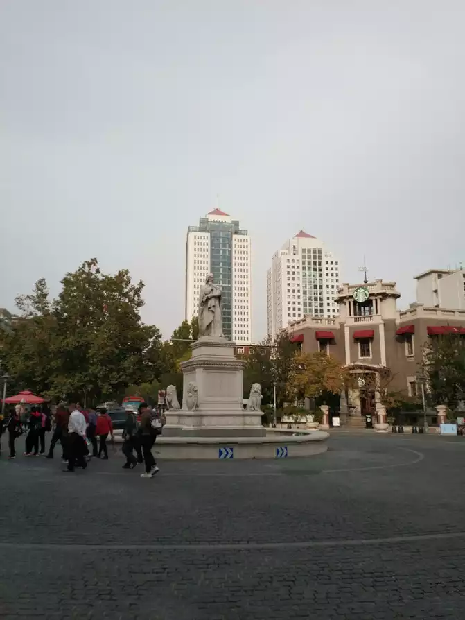 We continued cycling around the Italian-style area, looking at the red-roofed Italian-style buildings and European sculptures. We came to the pedestrian area and strolled to Marco Polo Square, which is one of the landmark buildings in the scenic area. On the central Corinthian stone column stands the goddess of peace holding an olive branch. In addition to Li Shutong and Liang Qichao, the scenic area also has many former residences of famous people. The former residence of warlord Cao Kun is now a commodity exchange; the former residence of Yuan Shikai and Feng Guozhang have been converted into hotels; there are also the former residences of Cao Yu and Zhang Tingye.