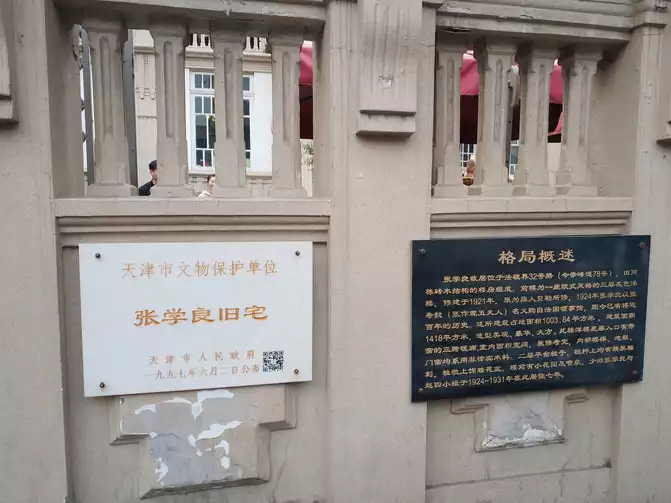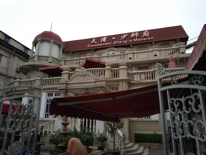 Zhang Xueliang's former residence is a magnificent three-story Western-style building. It is white, terraced, and features large terraces on the second and third floors. The red roof is inscribed with the words "Tianjin. Shaoshuai Mansion" in both Chinese and English. Inside, the building reveals the residence where the young marshal once lived.