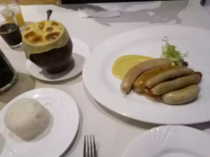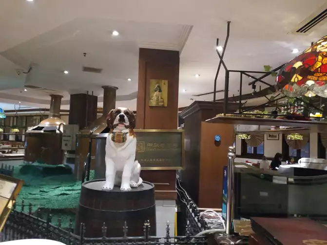 For dinner, we chose the Cheeseland Restaurant, which is very close to our hotel apartment. Cheeseland is Tianjin's oldest Western restaurant. Originally founded in 1908 by a German named Cheeselin, Cheeselin was a small restaurant and bakery. Its authentic German cuisine, bread, and pastries attracted customers and flourished. Many celebrities dined here, and it's said that Puyi and Wanrong also dined here frequently during their time in Tianjin. Cheeselin now offers a variety of Western-style restaurants, including a pastry shop on the first floor, Russian cuisine on the second, German cuisine on the third, and French cuisine on the fourth. Because the founder is German, we chose the German restaurant on the third floor. A set of German beer brewing equipment is prominently placed in the central kitchen.