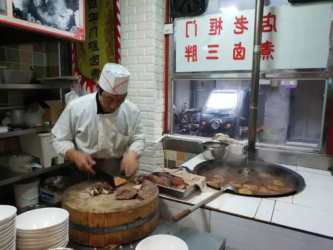Walking into a side alley of Dashilar, I saw some luzhu (braised pork stew) and bought a bowl to try. The stew tasted pretty good, but the dough was a little hard and needed to be soaked for a while longer.