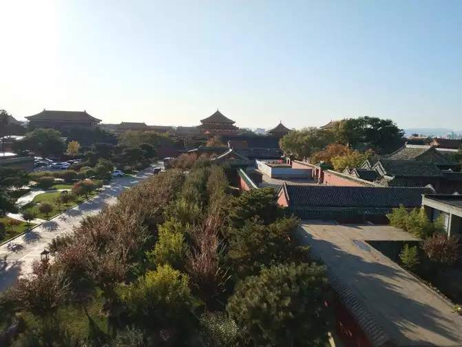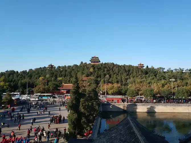 The buildings in the garden are symmetrically arranged along a central axis. The central Qin'an Hall houses Taoist deities, and the intertwined cypresses in front of the hall, which intersect above the corridor, are one of the palace's remarkable trees. Representing the four seasons, the Wanchun Pavilion, Fubi Pavilion, Qianqiu Pavilion, and Chengrui Pavilion are paired on either side of the Forbidden City. The Wanchun Pavilion and Qianqiu Hall, facing each other east and west, are known for their unique and exquisite design and are considered the most beautiful pavilions in the Forbidden City. The Imperial Garden is not large, but it is dotted with ancient cypresses, locust trees, and exotic flowers and plants. Also scattered throughout are pavilions, terraces, and crisscrossing stone paths, giving the garden a quaint and tranquil atmosphere while retaining a sense of imperial grandeur. Heading north from the Imperial Garden is Shenwu Gate, the northern gate of the Forbidden City and the exit from the Palace Museum. Known as Xuanwu Gate in the Ming Dynasty, Xuanwu is one of the four ancient mythical beasts. Directionally, the Azure Dragon stands to the left, the White Tiger stands to the right, the Vermilion Bird stands in front, and the Black Tortoise stands behind. Xuanwu represents the north, hence the name "Xuanwu" often given to the northern gates of imperial palaces. During the Kangxi reign of the Qing Dynasty, it was renamed Shenwu Gate to avoid mentioning the name of Emperor Kangxi, Xuanye. The Shenwu Gate tower, built on a city wall over 10 meters high, spans five bays and features a double-eaved hipped roof. A plaque with the words "Shenwu Gate" in Manchu and Chinese characters hangs beneath the eaves of the upper level. Stone railings surround the lower level. The city wall has three arched gates, the central one being openable and closable. A stone plaque inscribed with "The Palace Museum" stands above the north-facing arched gate. From here, you can exit the Forbidden City or continue your visit up the city wall. Across from the tower lies Jingshan Park, which is beautifully illuminated by the setting sun.
