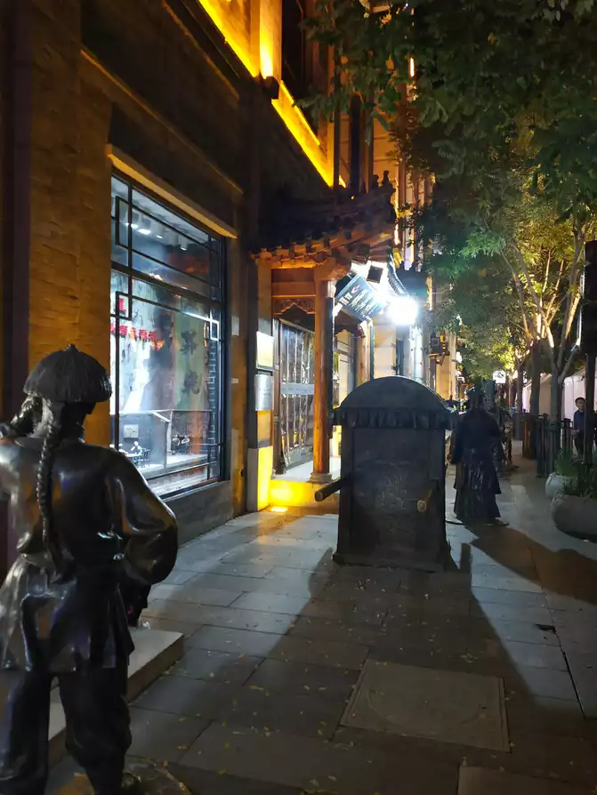 In the evening, we took a taxi to Datong Ancient City for dinner. Fenglinge Pavilion is in the pedestrian area, not far from Yanhua Temple. There are not many pedestrians at night, and the street seems a bit deserted, but Fenglinge Pavilion still needs to get a number and line up to wait for a table.