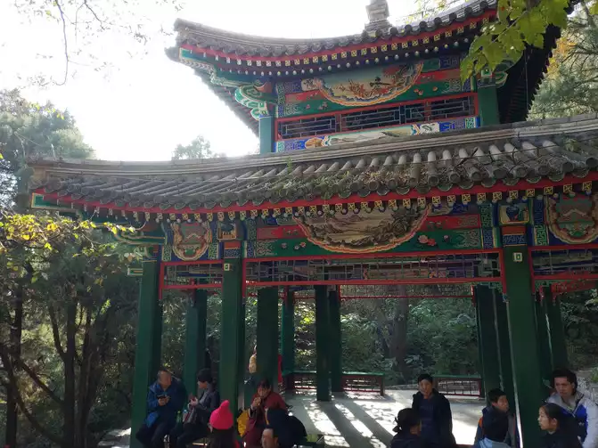 Xiangshan Park is located in the western suburbs of Beijing. It is a royal garden with mountain forest characteristics. The park has lush trees and many historical sites hidden in the forest. It is a scenic spot and natural oxygen bar in Beijing.