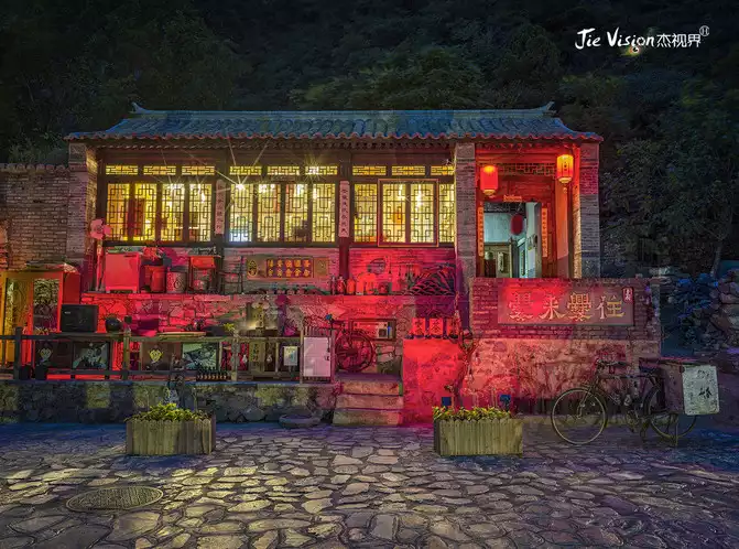 Passing by the Liu Laogen Stage and Liu Laogen Restaurant, the lights are gorgeous, and there is a huge root-carved longevity star on the roadside looking happily at the passers-by.