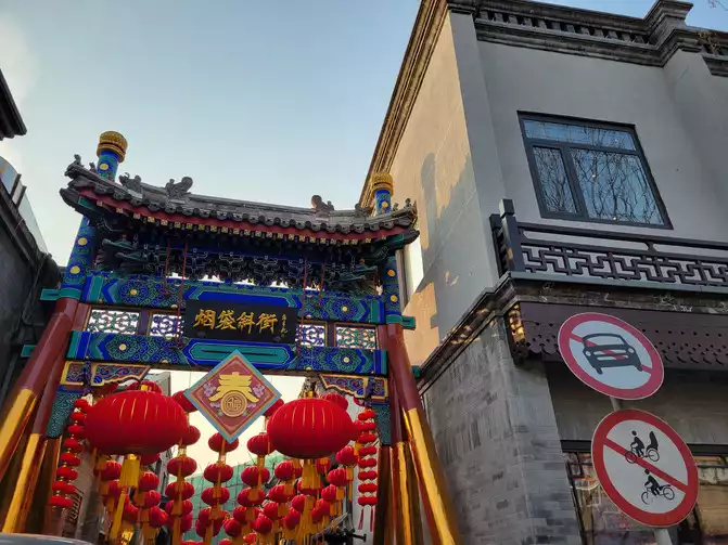 The buildings on the street are all antique-style, with archways, old signs, red lanterns, etc. Isn’t this the taste of old Beijing?
