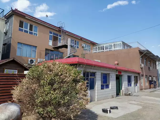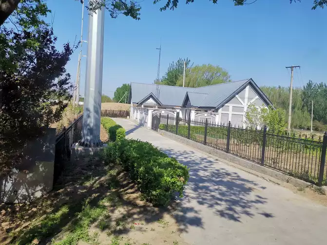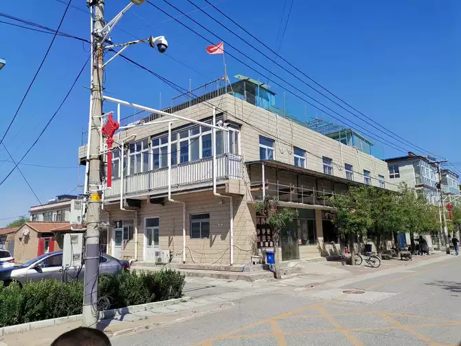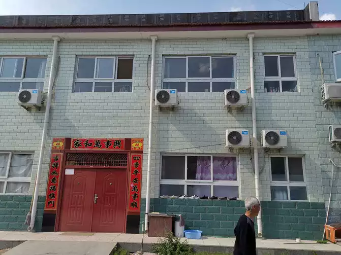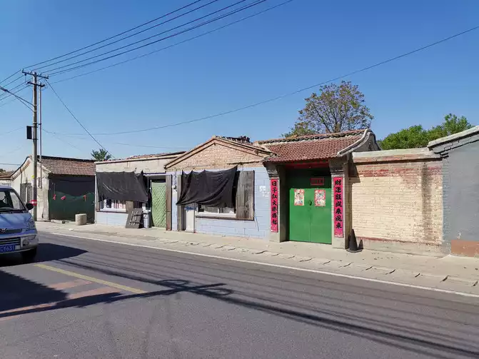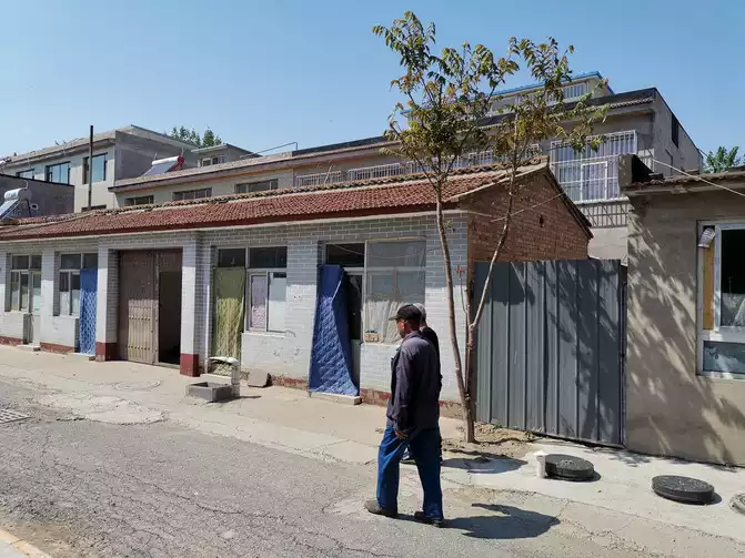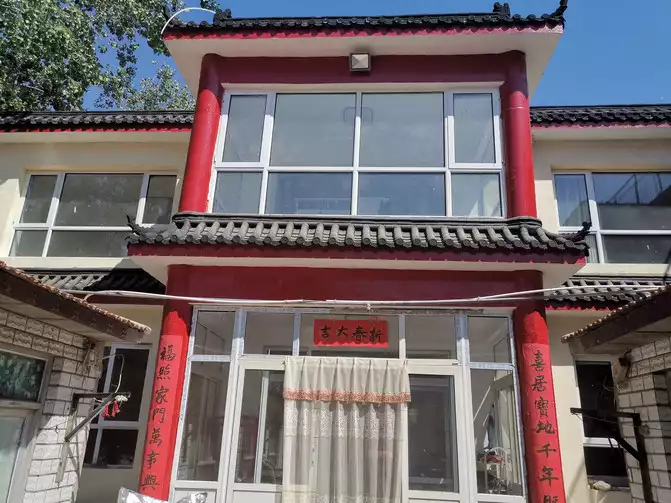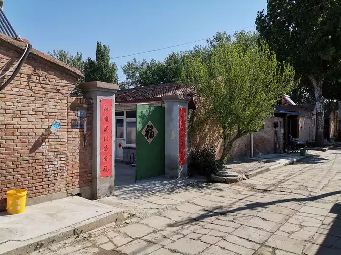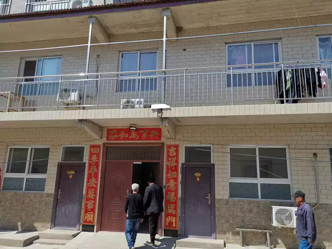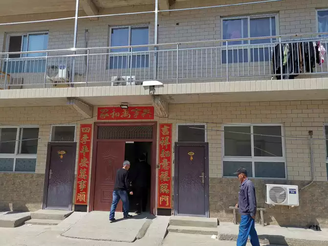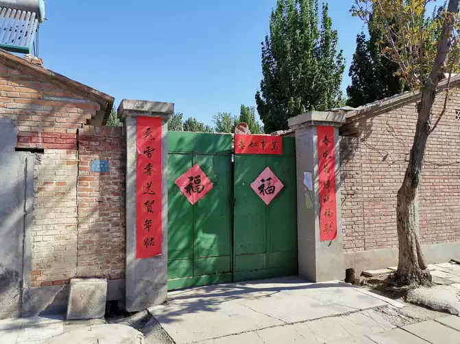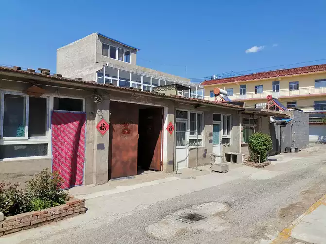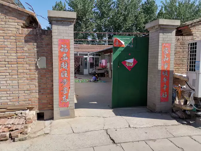 At 3:00 PM, the last house, the fifth one, is Xiao Fuzi's. He was born in 1962 or 1963. His family has the largest construction area, and the entire land is fully built. The red gate is his main entrance.