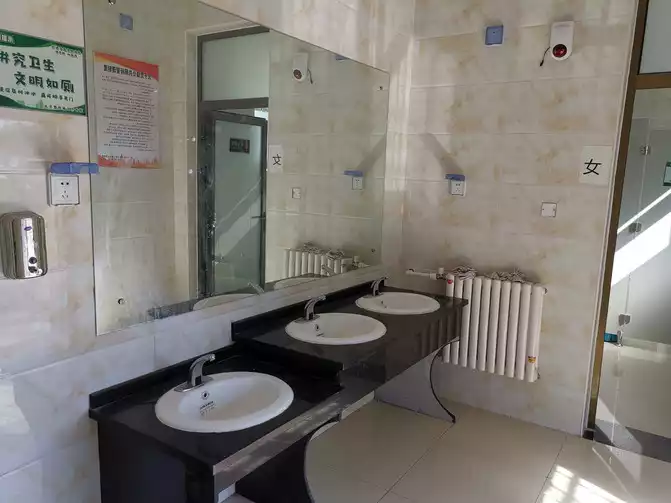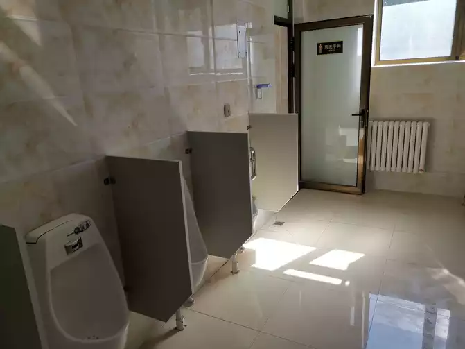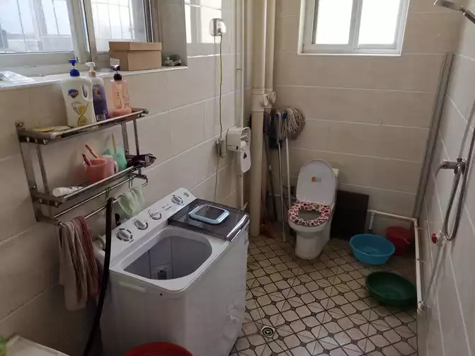 Sheng Ge’s bathroom, with washing machine and flush toilet, everything you need