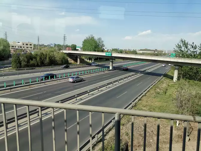 The blue road sign reads: Sixth Ring Road, Da Zhouyi Intersection