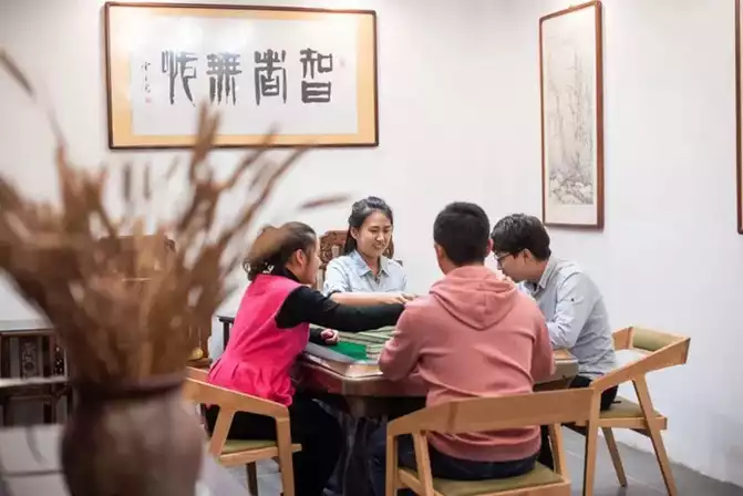 In addition to karaoke, the room features projection and a long table, and can be switched to conference mode with a single click, accommodating around 30 people. Next door to the KTV is another fun place for friends: the chess and card room. On summer nights, between the electric mahjong table and regular chess and card tables, you can enjoy the endless fun of playing chess with friends.