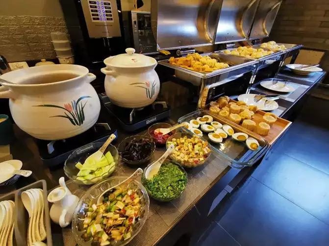 The delicious homemade fried dough sticks are often devoured by diners who come here for the treat! The rich and varied breakfast buffet provides enough nutrition for the day. Millet cakes, fried yuanxiao (Chinese dumplings), steamed corn, boiled sweet potatoes... With such a wide variety of main dishes, you might not be able to eat them all!