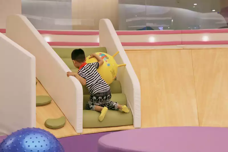 Located on the second floor of the playground, this brightly colored playground features several play areas with slides, wooden horses, trains, and large building blocks. All facilities are soft-padded to prevent children from getting hurt while playing. This is where the kids get excited and scream, and quickly start having fun.