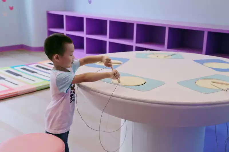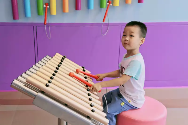 The music academy has a variety of musical instruments that can produce pleasant sounds. The children picked up wooden mallets, beat drums and played piano, and expressed their satisfaction with their own musical works.
