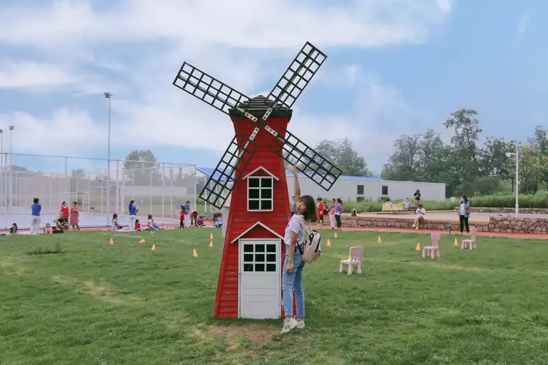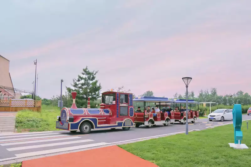 The sun in the suburbs of Beijing isn't as scorching as in the city. Here, you can work up a sweat and feel the refreshing after-workout feeling, which will melt away all your worries and stress. The train parade takes place at every hour. The starting point is on the right hand side of the entrance on the first floor of the amusement park, facing the outdoor area. We took a small train around the resort, which took about 50 minutes. Along the way, we passed by flower fields, grape picking gardens, wineries, vegetable picking gardens and other places.