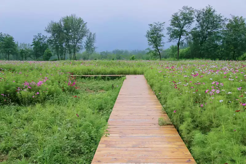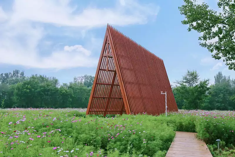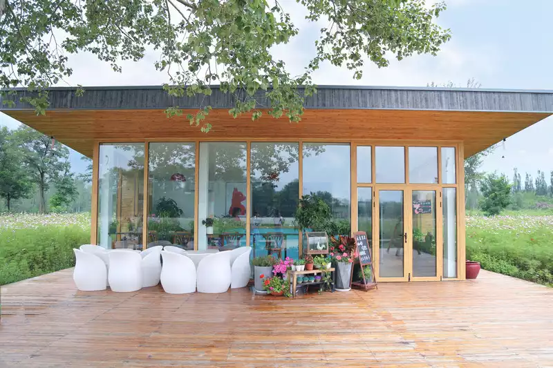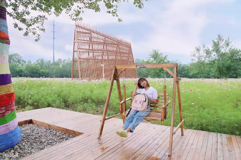 Wander along the wooden plank path among the flowers, or swing gently on the small swing in front of the cafe, smelling the faint floral fragrance wafting on the wind, and feeling the scattered sunlight from the shade of the trees fall on you.