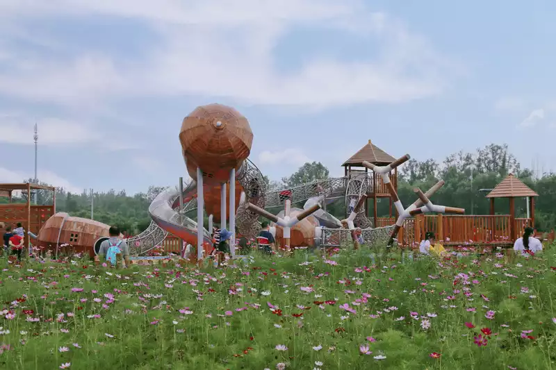 Pine Cone Paradise is filled with laughter and has become a favorite haunt for my friend's children these days. Each little one is like a nimble squirrel, treating the park like a sheltered pine forest, scrambling up and down.