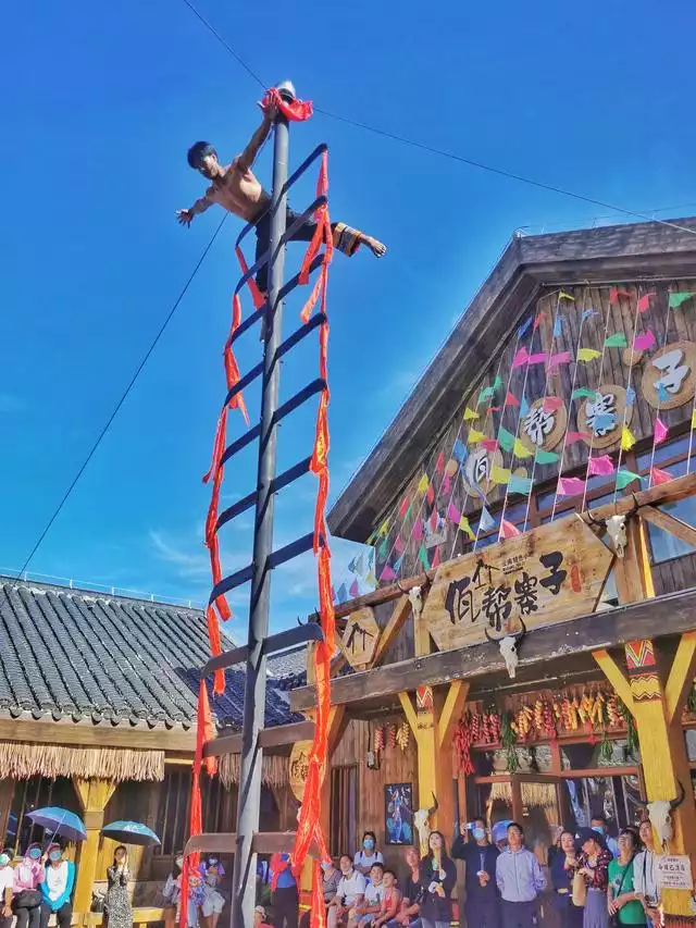 At four o'clock in the afternoon, the Wa village was full of people, all of whom came to watch the Wa men go up the knife mountain. After the long-haired sister's energetic head-shaking dance, the Wa village's highlight moment arrived. Using his sharp half-meter-long sword, capable of severing strips of cloth in an instant, the young Wa man, using both hands and feet, instantly climbed to the top of the sword mountain, towering above the rooftops. With his belly resting on the sword blade, his entire body soared into the air, the audience erupted in cheers. Every job deserves respect. The young man constantly demonstrated his time-tested skills, inspiring both admiration and a touch of heartache. Xiaoxiao applauded, exclaiming, "Uncle, what a master!" After the performance, the young man would carefully sheath the sword to prevent accidental injury.