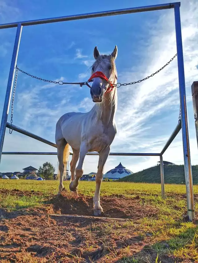 The little white horse that just took a bath is a white Spanish pony, Andalusian breed, 13 years old this year, a neutered boy, worth 300,000 yuan;