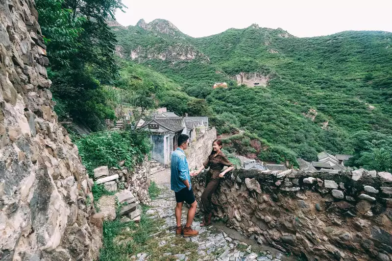 Just a three-kilometer drive from the peaceful Cuandixia Village lies a strange yet familiar wild spot: Jingxi One Line Sky. The Huarong Pass in "Romance of the Three Kingdoms" and the narrow road encounter in "The Warlords" were both filmed here.