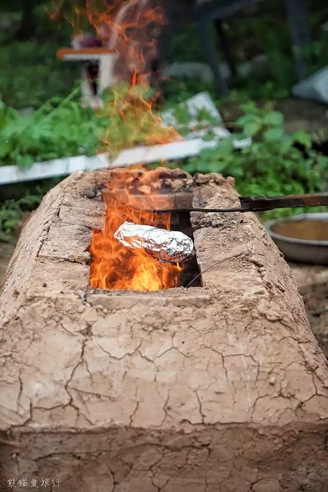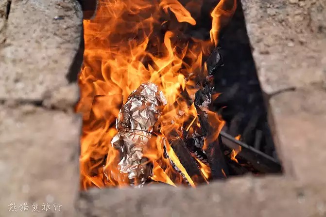 After 3 hours, the food is out of the oven! As you peel back the scalding foil, the aroma of barbecue fills your nostrils, and you'll almost drool! Besides the traditional grilled lamb chops, this barbecue feast also features grilled pig's trotters, pork belly, chicken feet, and roasted potatoes and sweet potatoes. If you'd like to order something else, just let the owner know! They'll also pair it with a variety of hot and cold seasonal dishes, like okra salad, perilla salad, steamed corn, and purple sweet potatoes. The corn is highly recommended; it brings back the flavors of childhood!