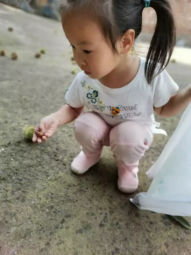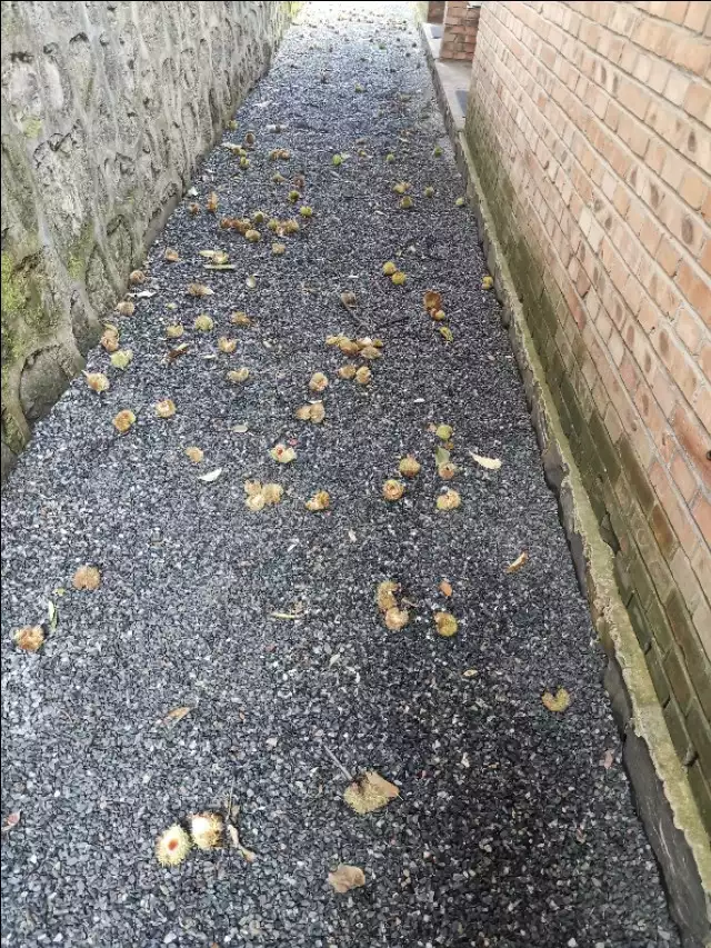 The chestnuts were in the B&B's own yard, and picking them up was free! At the time of ripening, the yard and rooftops were littered with golden chestnuts. Dads beat them with bamboo poles while children gathered them below, having a blast!