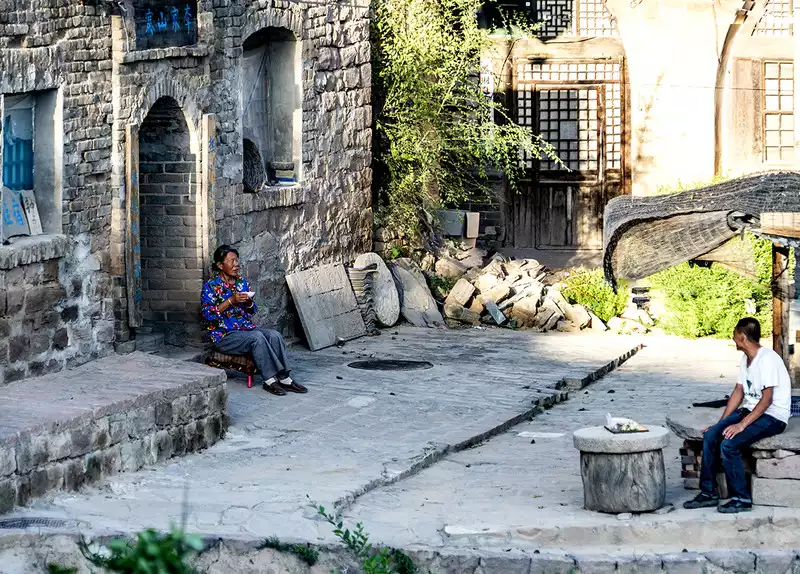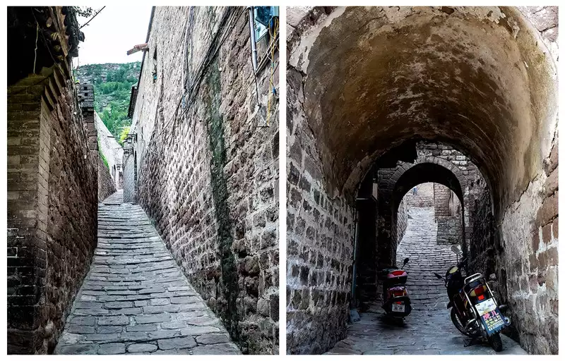 Two small streams flow southward within the village, converging southward and emptying into the Yellow River. The hill between the two streams resembles the head of a phoenix, while the mountains on either side resemble its wings. Feng shui practitioners believe this topography is extremely beneficial for accumulating wealth. The streets within the village are uneven and paved with stone blocks, creating a neat and orderly layout. In the evening, villagers, tired after a day's work, began to cook and eat, couples chatted, and experienced model Old Man Li confidently sang the Shanxi folk song - Xintianyou, smoked a pack of cigarettes leisurely, and went home with his donkey.