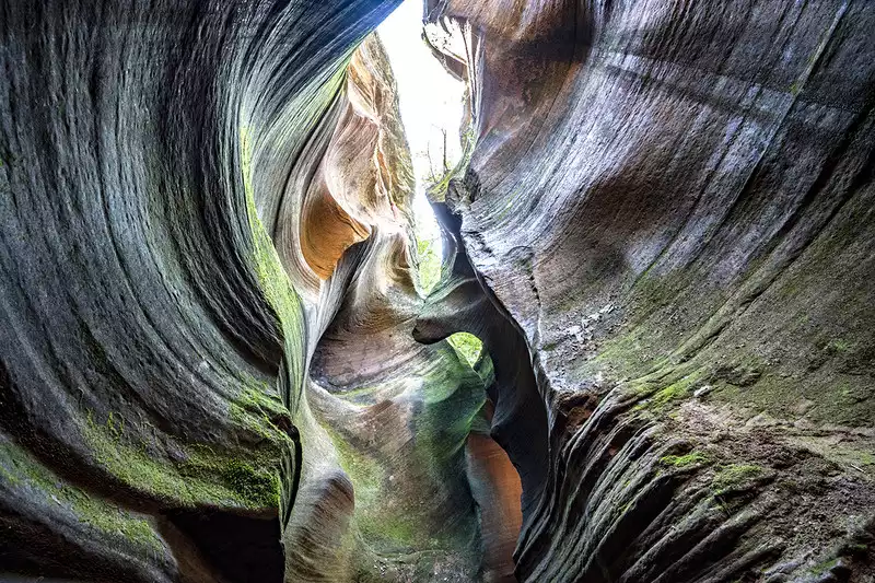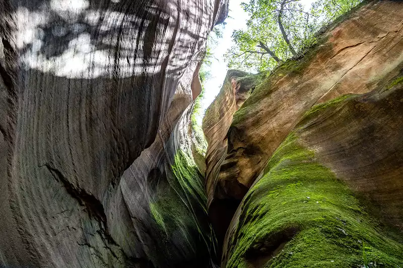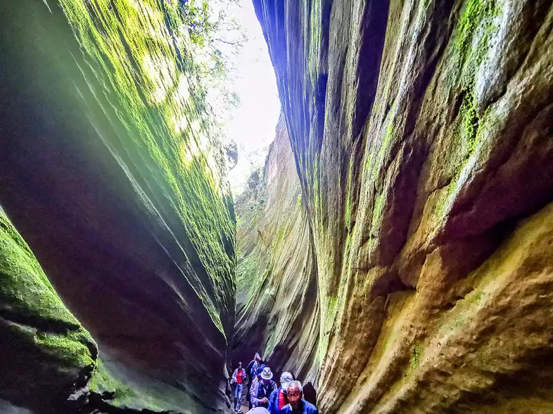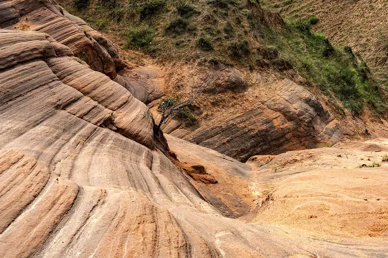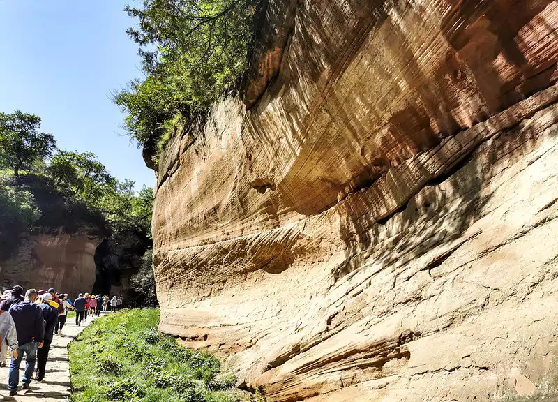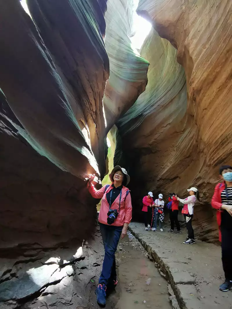 I had thought we could go directly to the Yucha Grand Canyon, but our tour guide told us the best time to photograph the canyon was between noon and 2 p.m., leaving us plenty of time to visit Mudangou. It's said that Mudangou was formed hundreds of millions of years ago when a major earthquake split a mountain in two, creating a large rift. Later, erosion by wind and rain shaped the canyon. There are many wild peonies on the roadside, so it is named Mudangou. The canyon is about 100 meters long and 1 meter wide. The ground is uneven, so you must be extremely careful as the ground is slippery. You can return after about an hour of sightseeing.