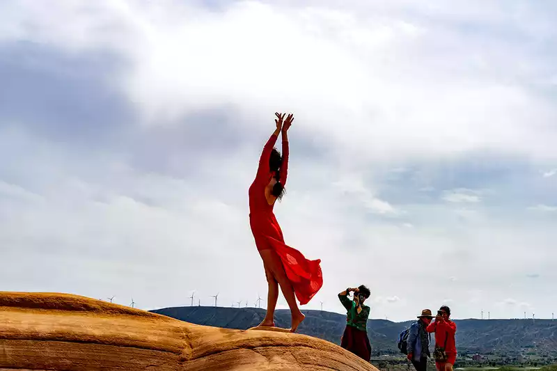 The beautiful yoga instructor in the team was fortunate to fully demonstrate her graceful movements in the photographer's lens, adding a more beautiful view to the beautiful scenery.