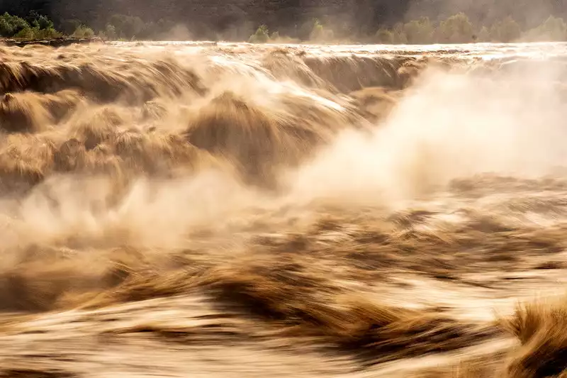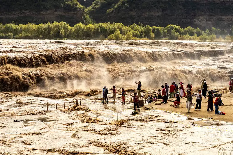 The Hukou Waterfall on the Yellow River is a popular tourist destination, located in Hukou Township, Yichuan County, Yan'an City. The Yellow River is flanked by Shanxi and Shaanxi provinces. Our hotel was in Shanxi, with Shaanxi directly across the river. The roaring Yellow River surges like a raging storm, its turbulent flow awe-inspiring. I was struck by the magnificence of the Yellow River's unwavering spirit and its invincible spirit.