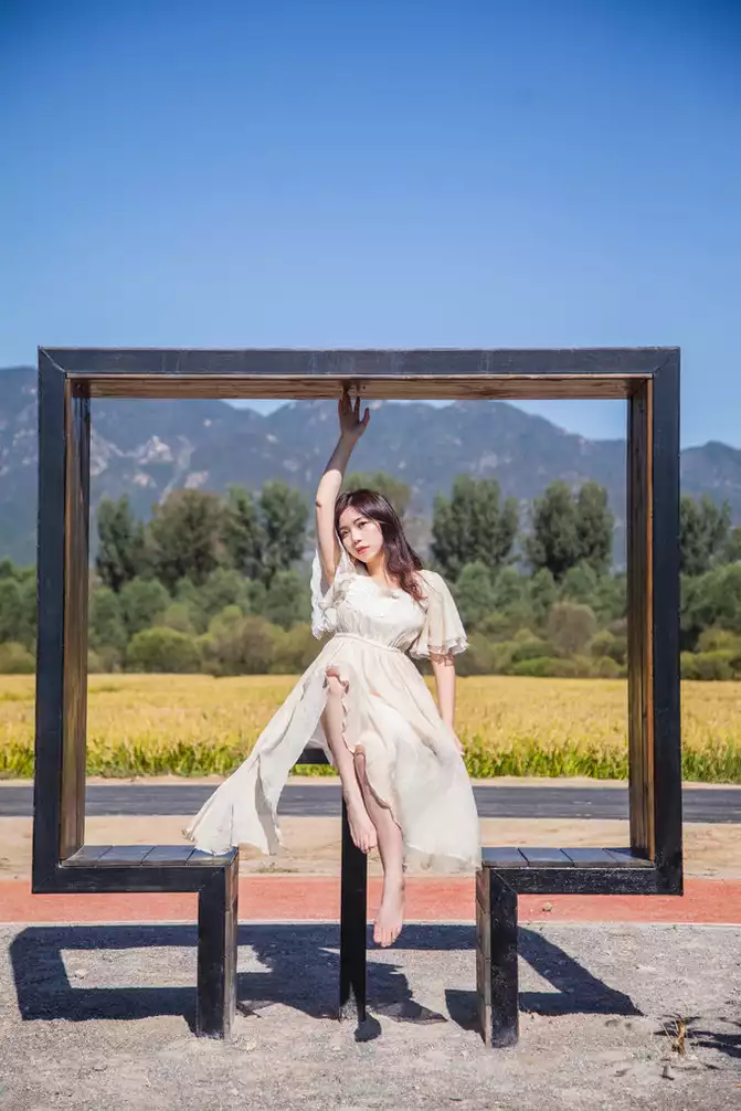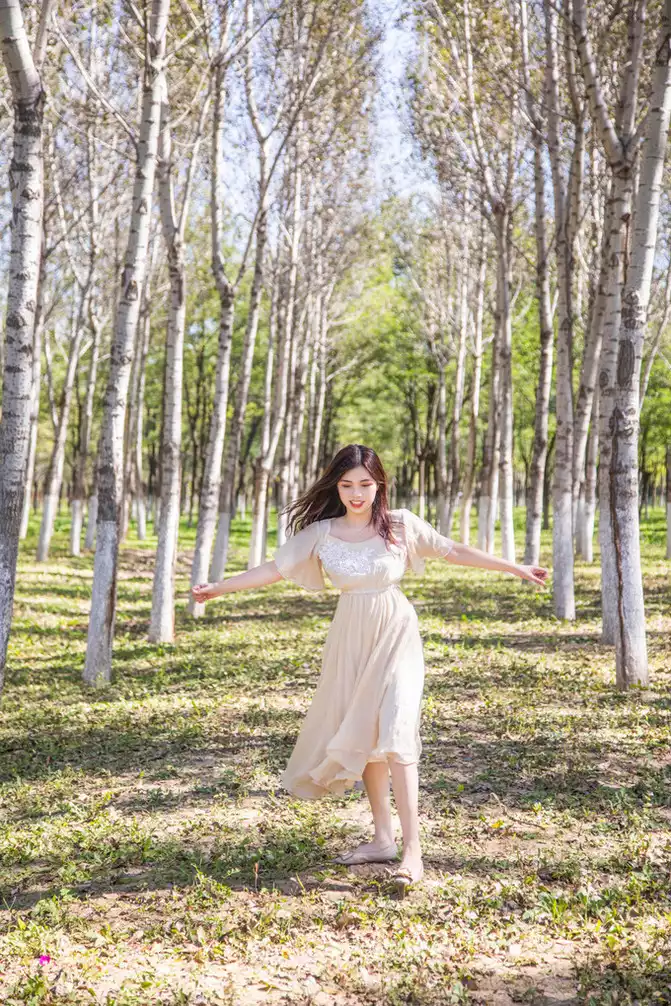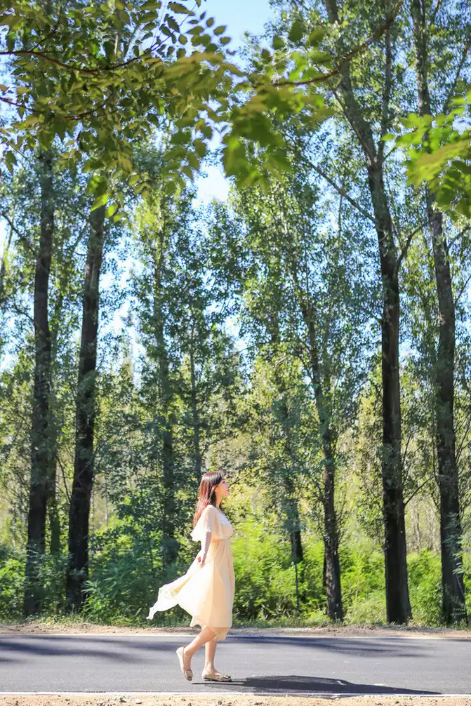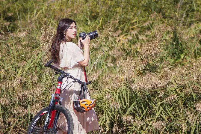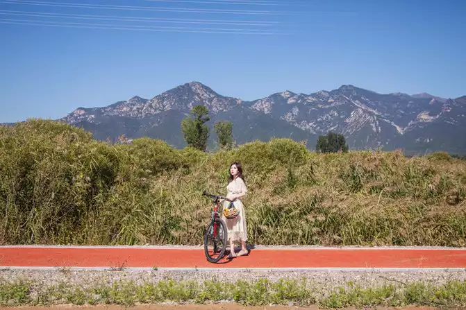 My friend is a person who particularly likes cycling. He told me that this newly opened park is especially suitable for cycling and taking pictures. The scenery is also very good. He took me, who is wearing a flowing skirt, to experience the joy of cycling!