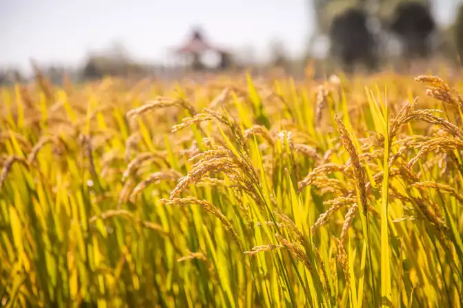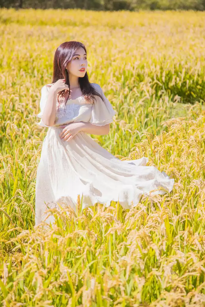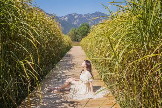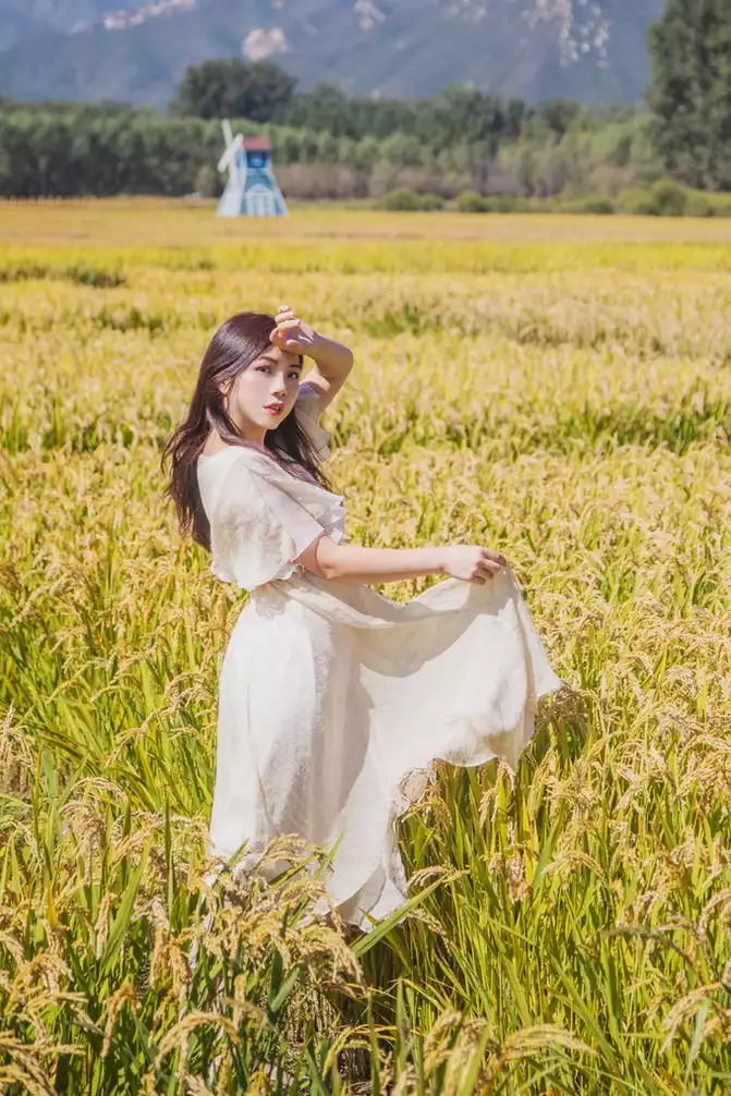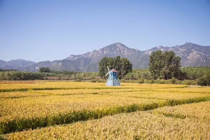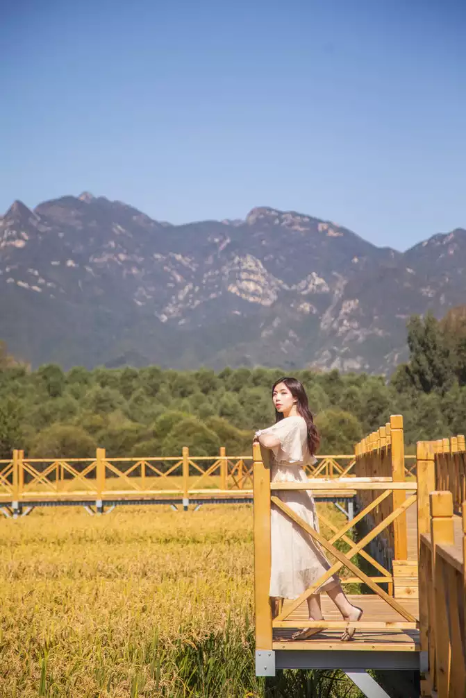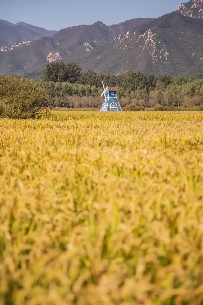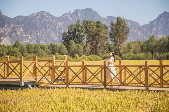 Rice fields are rarely seen in northern China, so as a southerner, seeing this paddy field was incredibly familiar. The water had already been drained from the paddy field, and the park had even designed ridges for walking inside, allowing for photos of people immersing themselves in the golden rice fields.