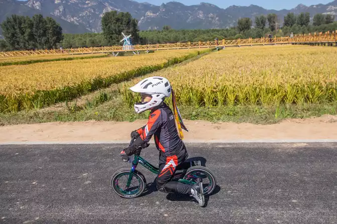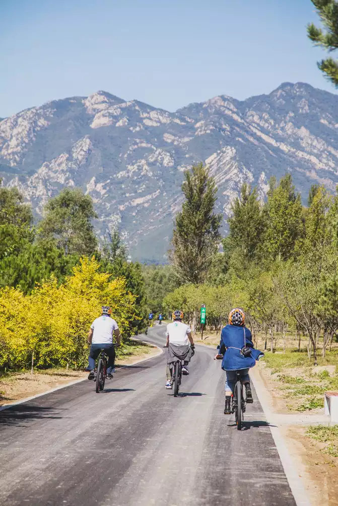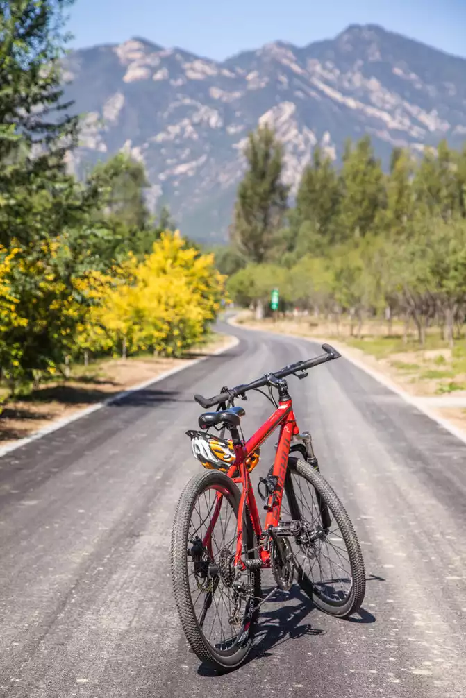 A cycling race happened to be taking place at Banquan Sports Park on the day we arrived. We found out it was the 10th Beijing International Cycling Conference. All kinds of senior cyclists from Beijing were there, so many professional athletes were lined up at the entrance. It happened to be a sunny day, and everyone seemed in high spirits. This is the starting point of the cycling race! Good luck to everyone! Let's hurry over there! Since we were already here, my friend and I, two amateur cyclists, rented a bike each to give it a try. While we couldn't race like the pros, it was still nice to take it slow and enjoy the scenery. The cycling and running paths at Banquan Sports Park are exceptionally well-maintained, with clear signs indicating how much road you've ridden. It's considered a professional cycling track, no wonder it hosts a city-wide cycling competition. We checked and found that the West District of Banquan Park, where we're currently, has professional road cycling tracks with 5km and 10km laps, as well as a 33km hiking and fitness trail, which can definitely meet the needs of most professional and amateur athletes.