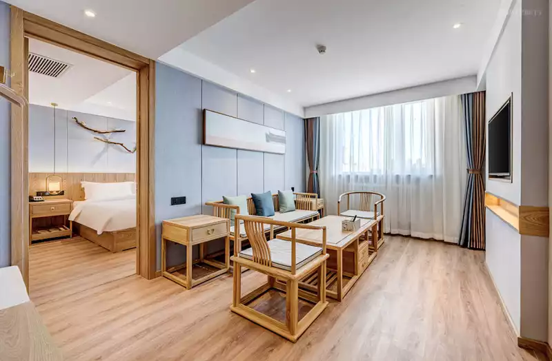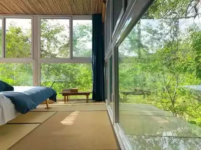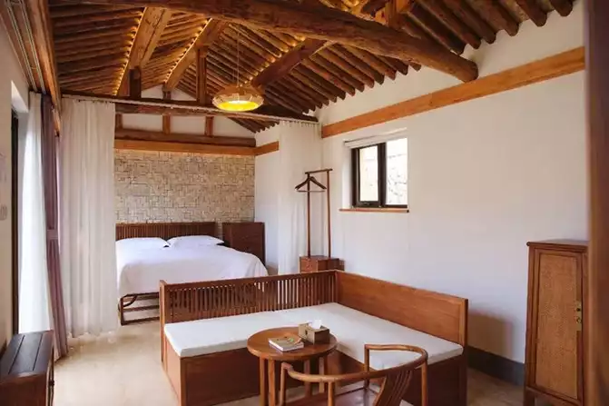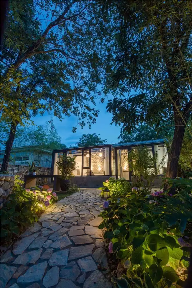 Here are Lotus Mountain, Yanyu Mountain, the Great Wall ruins, Wanglongtan Grand Canyon, and the Shatanggou Red Base. Whether you are hiking, trekking, picnicking, reminiscing about the past, playing in the water, or picking, each one has its own unique charm. The Huanglongtan Dragon King Temple in Shangmo Village, Dazhuangke Township, boasts the best-preserved stone murals of any rural temple, bearing the imperial calligraphy of Emperor Qianlong and Emperor Guangxu. Both Cimuchuan Village, where Han Zhongli was born, and Hanjiachuan Village, where he achieved immortality through spiritual practice, also boast numerous historical and cultural stories, all embodying the legacy of folk wisdom. Interested individuals should visit and explore these sites. Such a prime Feng Shui location naturally calls for a soothing abode, one that offers a sense of tranquility and peace, yet is accessible and offers a sense of enlightenment. This elegant residence nestled among pine trees and bamboo forests, nestled among the flowers, is just the right place.