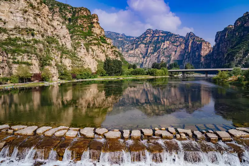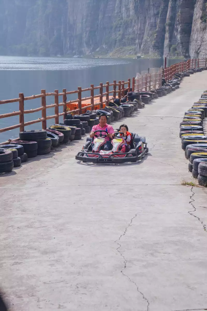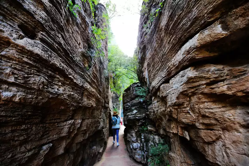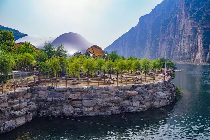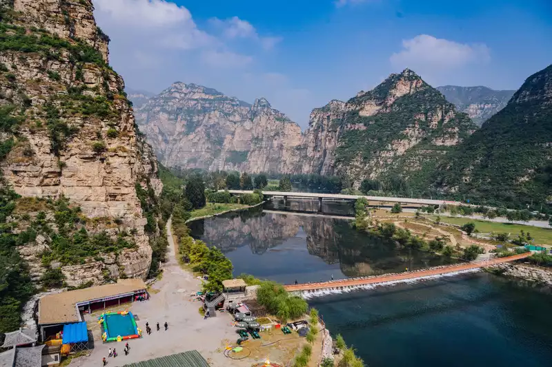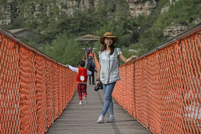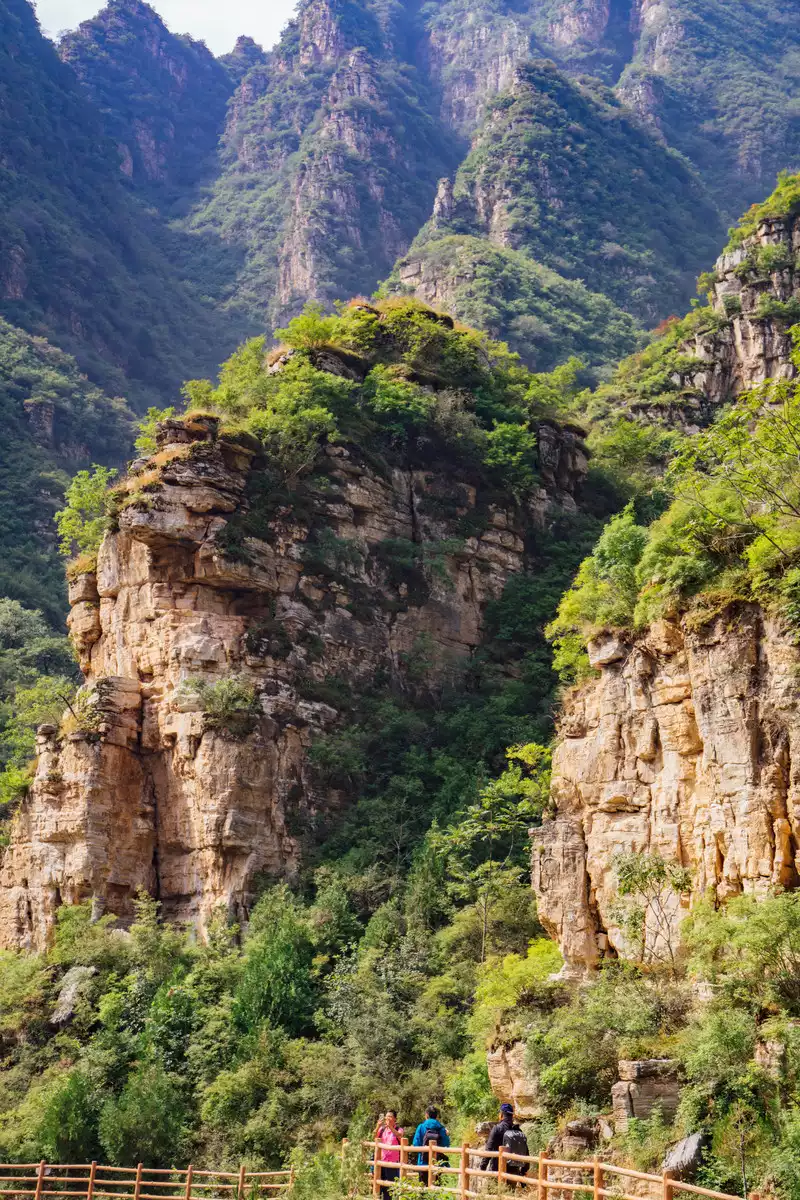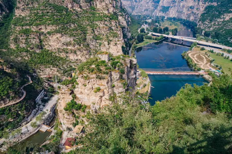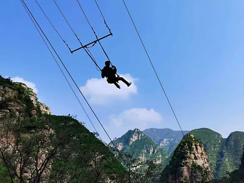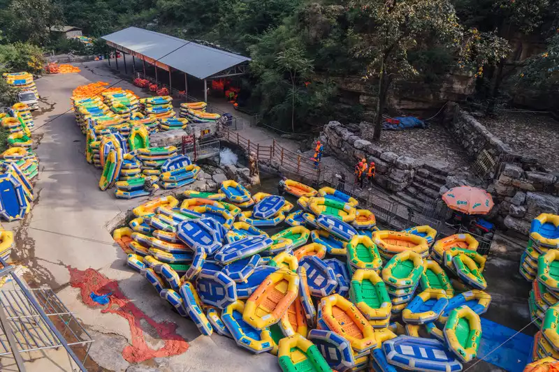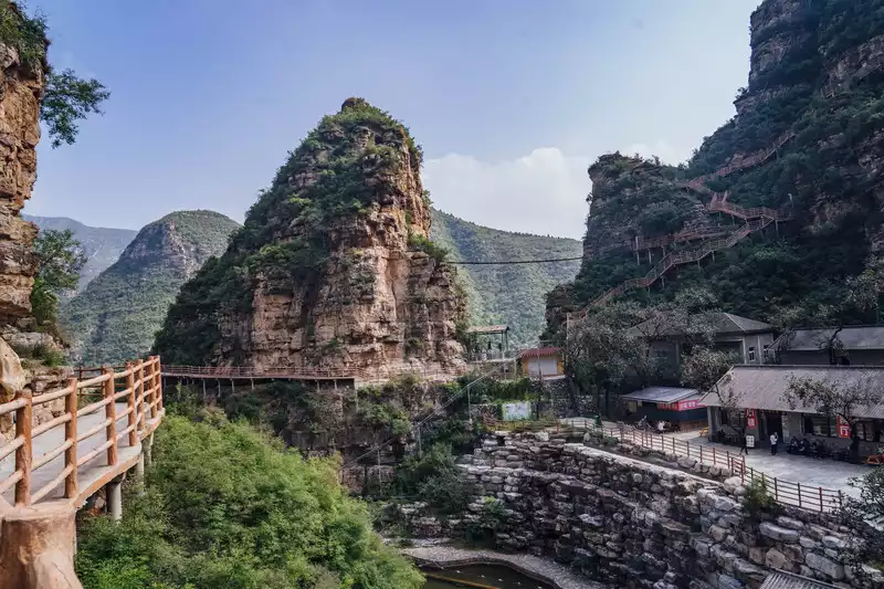 The scenic area boasts over 8,000 meters of hiking trails, each offering a different view. Deep within, you'll find verdant mountains and lush greenery. In the Grand Canyon beneath Tianzi Peak in the Taihang Mountains, there's the "First Rafting at the Foot of the Emperor," approximately 3.8 kilometers long and featuring over 300 high-speed jumps.