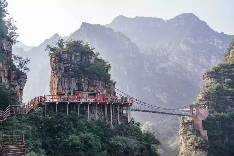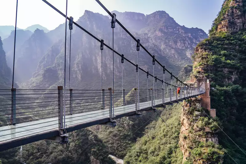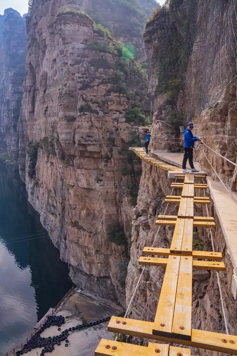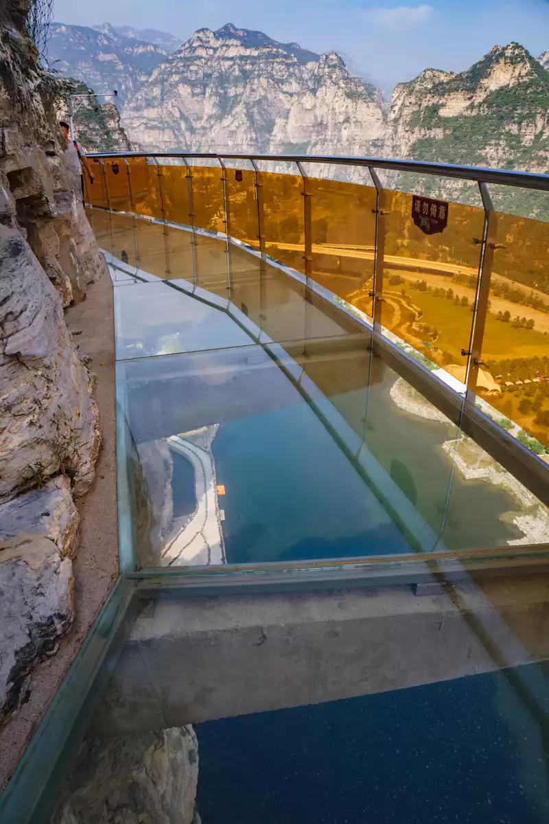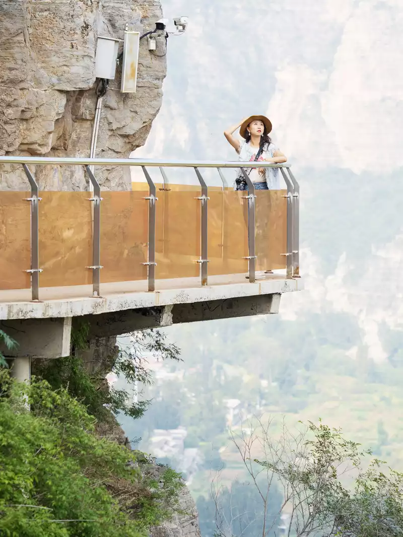 3. Qingyun Glass Plank Road: This plank road is located high on a mountain next to the Juma River. It feels like a "hanging plank road". You need to put on shoe covers before walking on the plank road. There are people reminding you to change shoe covers at the entrance and exit of the plank road.