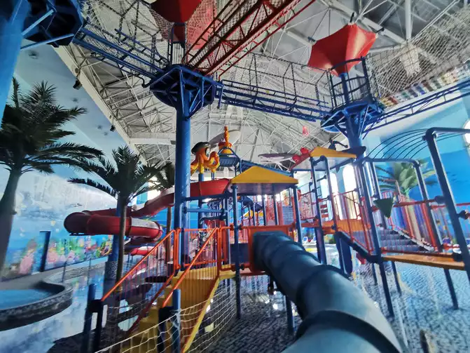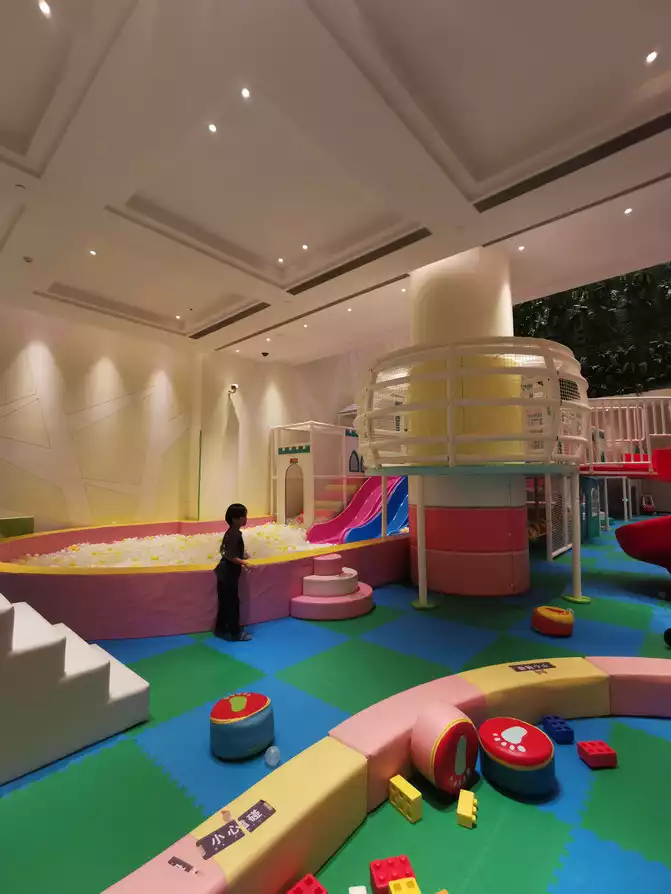 If you have special food preferences, you can also enjoy exquisite dining here. The pristine white tableware, the exquisite food, the art of gourmet cuisine dancing on the tips of the knives and forks. The restaurant, with its understated elegance, nestles amidst the hotel's vibrant blossoms. Brightly lit, shimmering luminous glasses complement vibrantly colored plates, creating a vibrant fusion of culinary delights and artistic living. However, you might not realize this hotel also hides a secret: an indoor children's play area and a large children's water park, offering a wide variety of entertainment options. Both young and old will find something to enjoy. The children's park is filled with toys and activities for children, including slides, trampolines, and drawing boards. The large water park is a haven for children. Believe me, even you, as an adult, will love it here, after all, there's a playful little kid in us all.