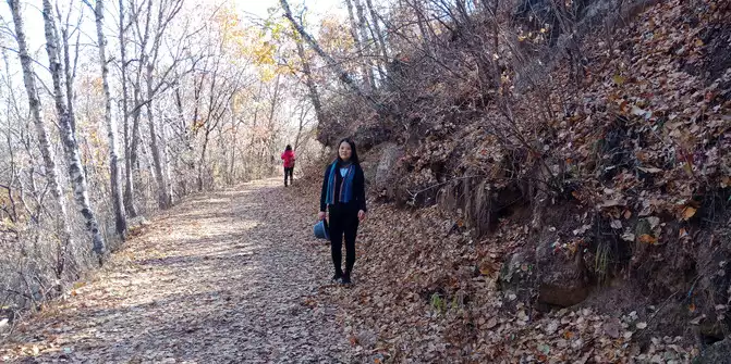 The distinct climate throughout the year regularly paints Beijing with a vibrant array of colors. You've probably heard the saying, "When autumn arrives, Beijing turns into Beiping." We're incredibly lucky! Look, the sky is so blue! It's just the beginning of the climb, though. My girlfriend, exhausted from the overwork, is starting to get scared. She's been asking me if we can stop climbing. I quietly grabbed all the luggage, including her coat. It's only just beginning... Autumn in Beijing is beautiful yet fleeting, just like the happy moments in life – precious and worth savoring.