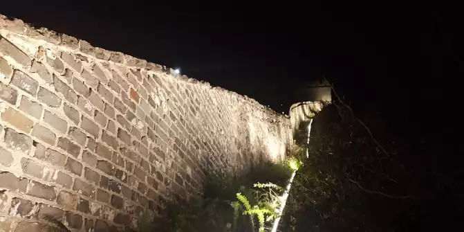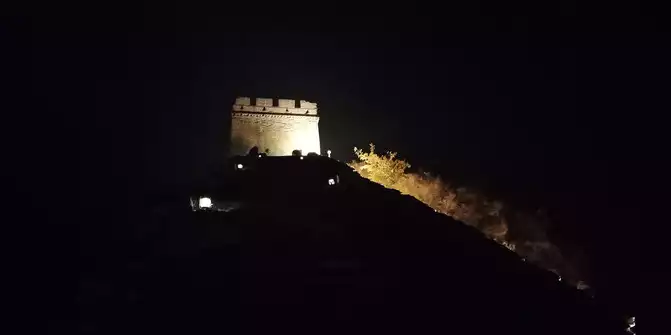 In the dark night sky, a long dragon of lights stretches into the distance. This is the most beautiful night view of the Great Wall. src="https://dimg04.c-ctrip.com/images/0106w1200086r5yws483E_W_671_0_Q90.jpg?proc=autoorient" />