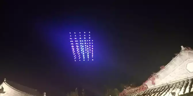 The drone show is a highlight of Gubei Water Town. It is the first time I have seen such a large-scale and precisely controlled drone show array. It is also a commemoration of our trip.
